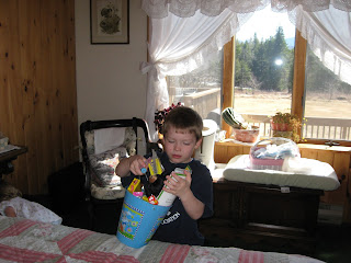 It was so nice to be able to hide their baskets outside - still some snow in the back ground, but it's on the retreat.